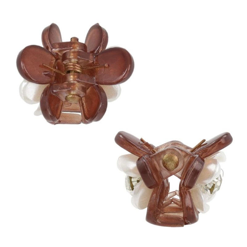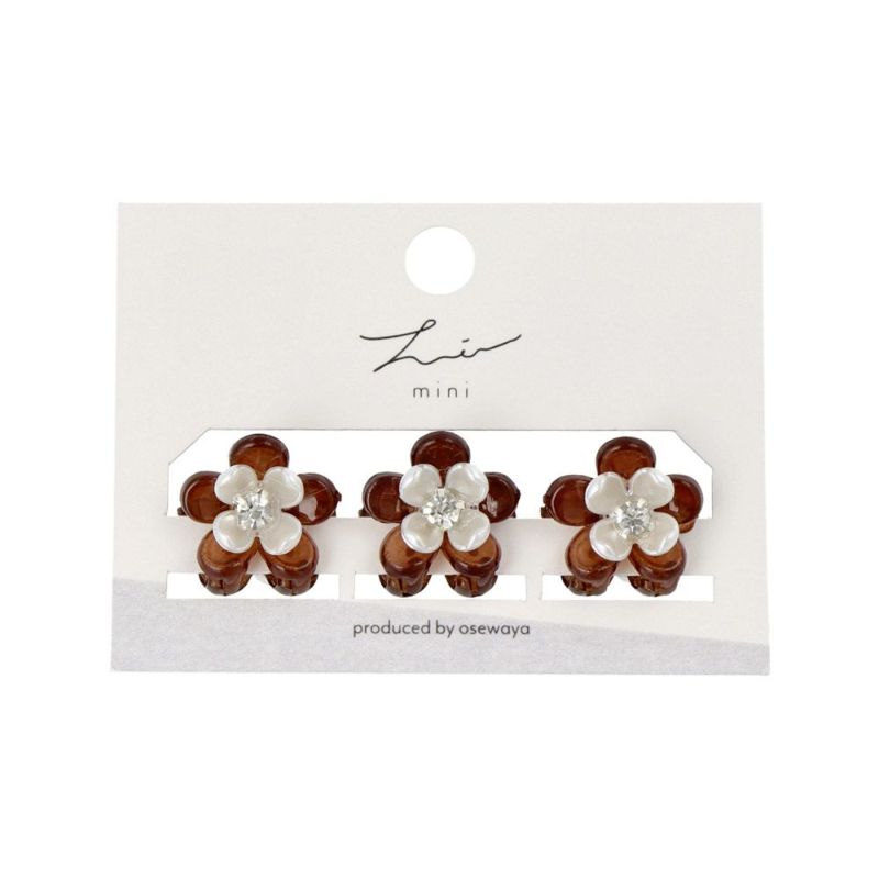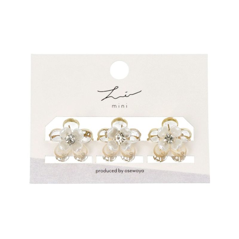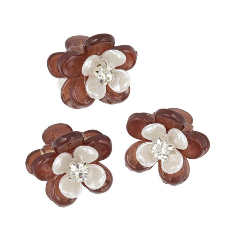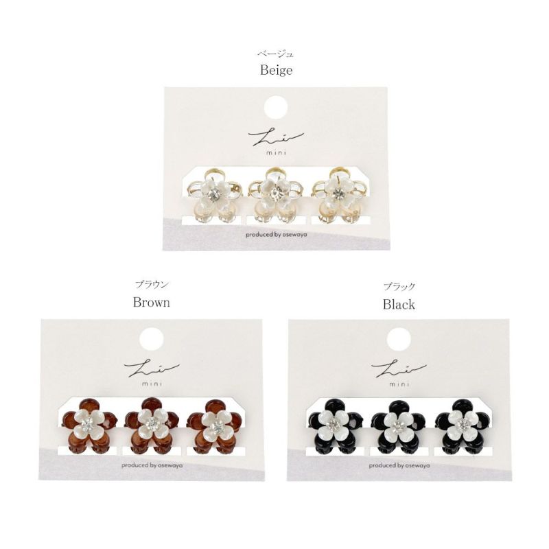 ヘアクリップ 花 フラワー バイカラー ストーン 3個セット ミニ バンスクリップ