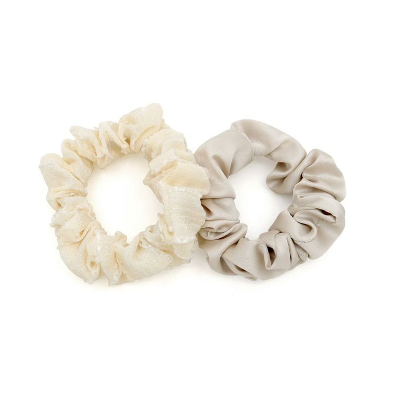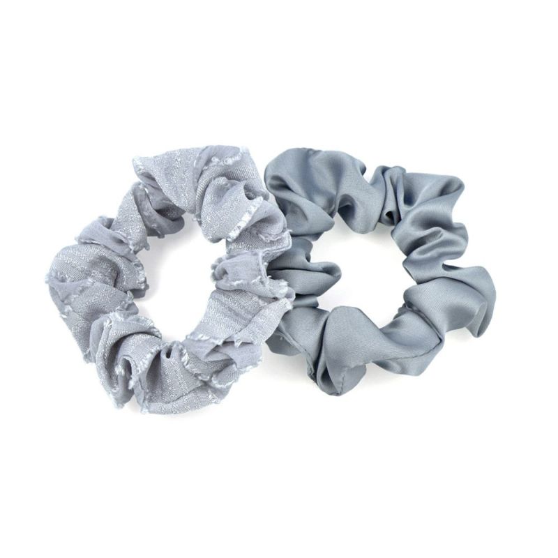 cc0159アレンジが楽しめるふんわりシュシュの2個セット、結び跡がつきにくい髪にやさしいアイテム。