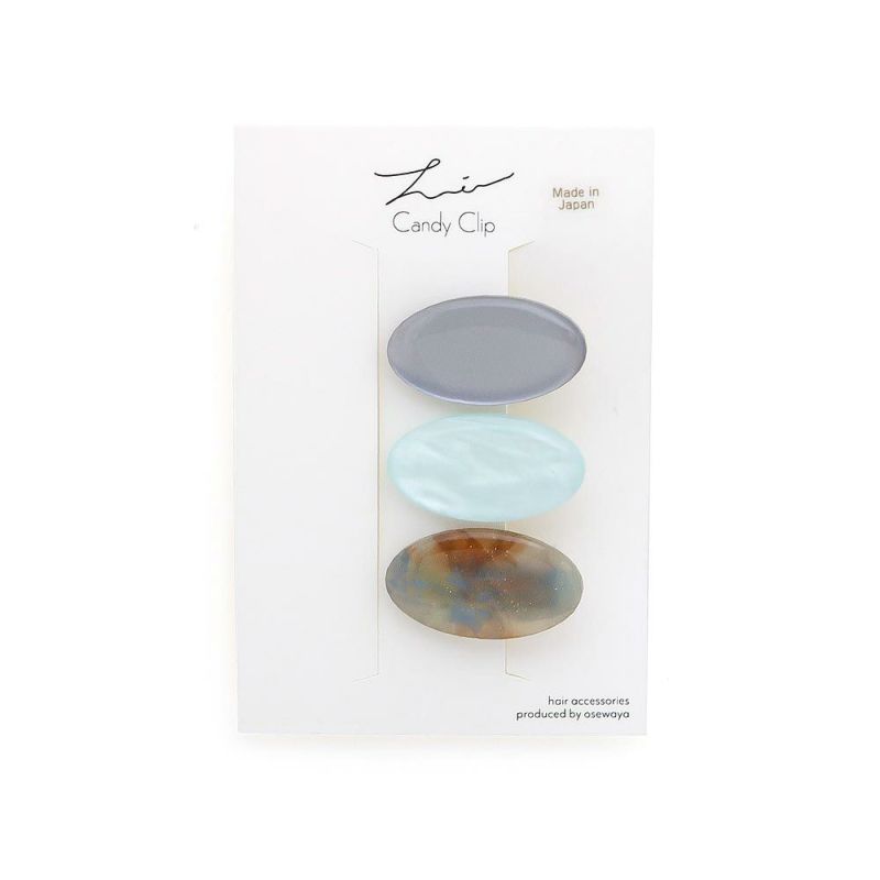 ヘアクリップ Candy Clip トリプル カラー マーブル オーバル 3個セット ミニクリップ