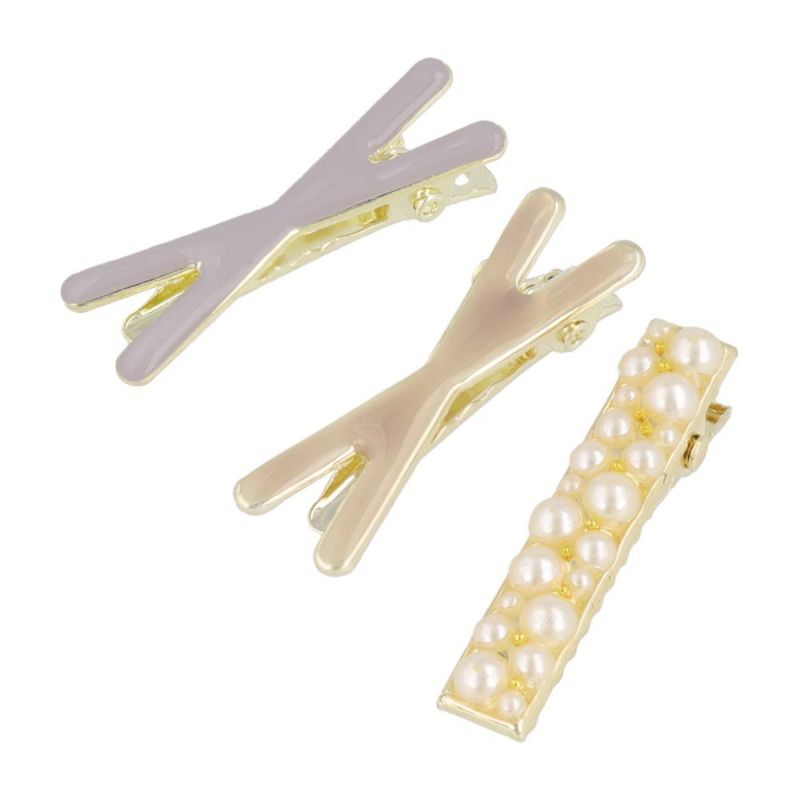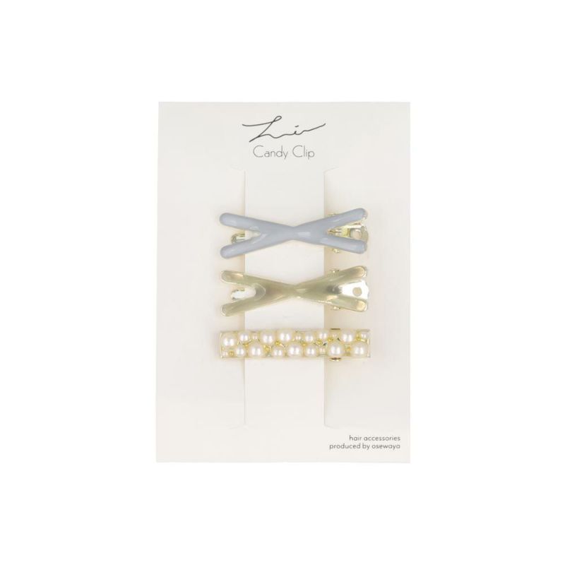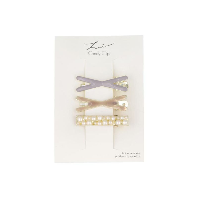 ヘアクリップ ニュアンスカラー エックス パール 3個セット ミニクリップ