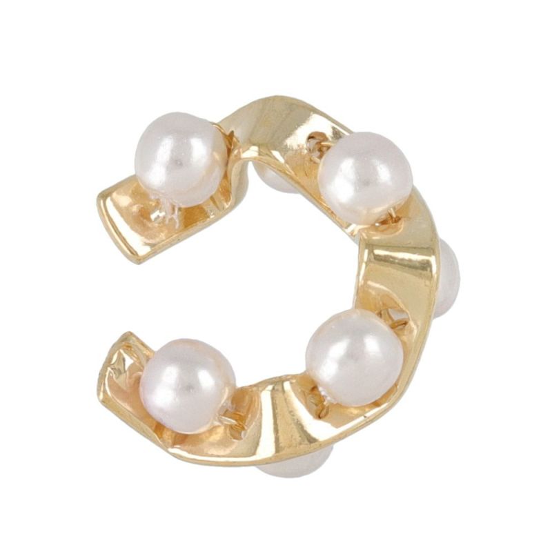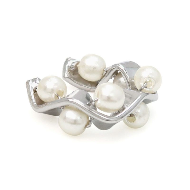イヤーカフ ニッケルフリー メタル ウェーブ パール イヤリング【片耳用】