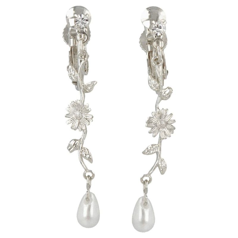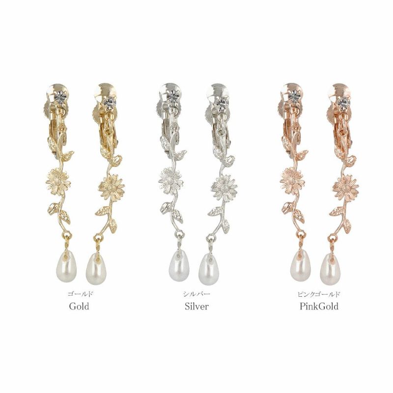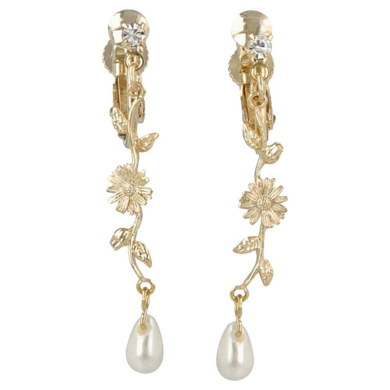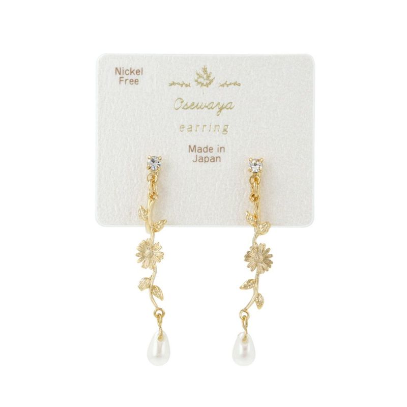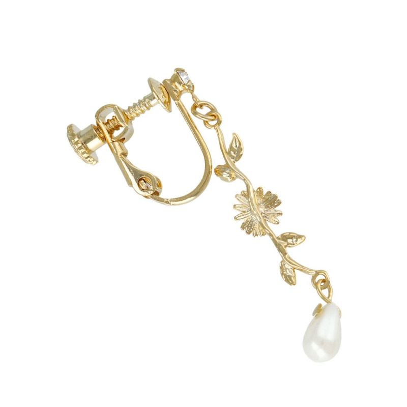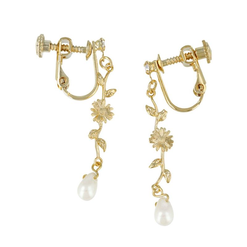 イヤリング ニッケルフリー メタル ミニ マーガレット ドロップ パール ストーン ネジバネ式イヤリング
