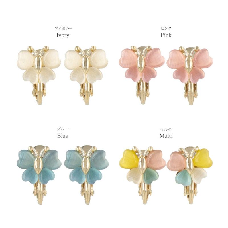イヤリング ニッケルフリー 蝶 バタフライ 合成キャッツアイ ネジバネ式イヤリング