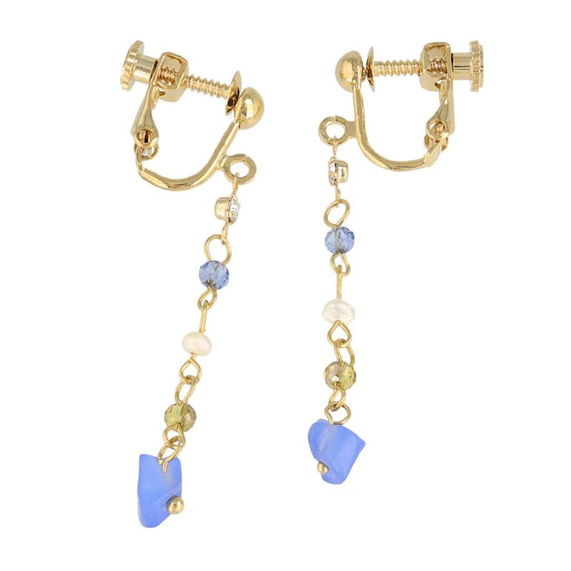 イヤリング ニッケルフリー 淡水パール 合成キャッツアイ ストーン ビーズ ネジバネ式イヤリング
