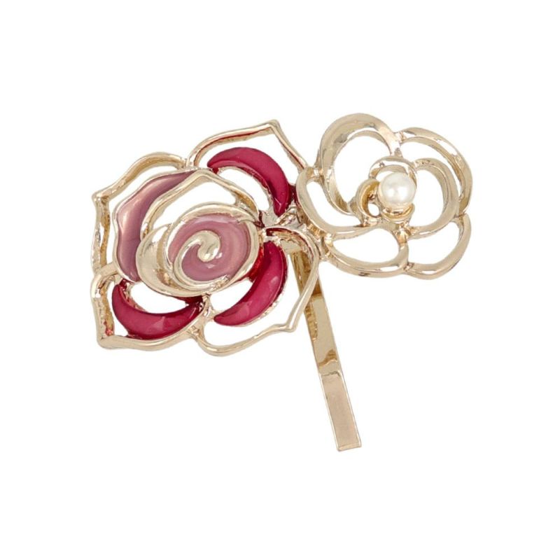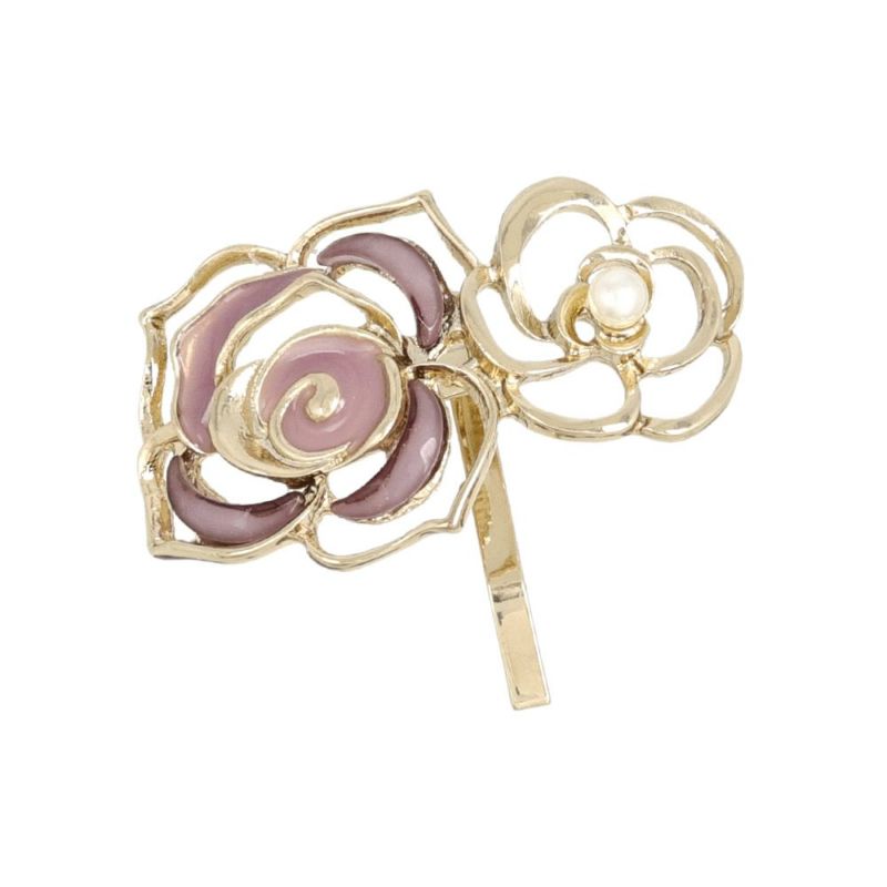 ヘアカフ 透かし バラ ローズ カラー メタル パール ヘアポニー ポニーフック