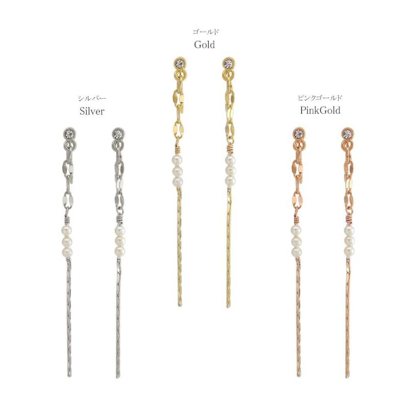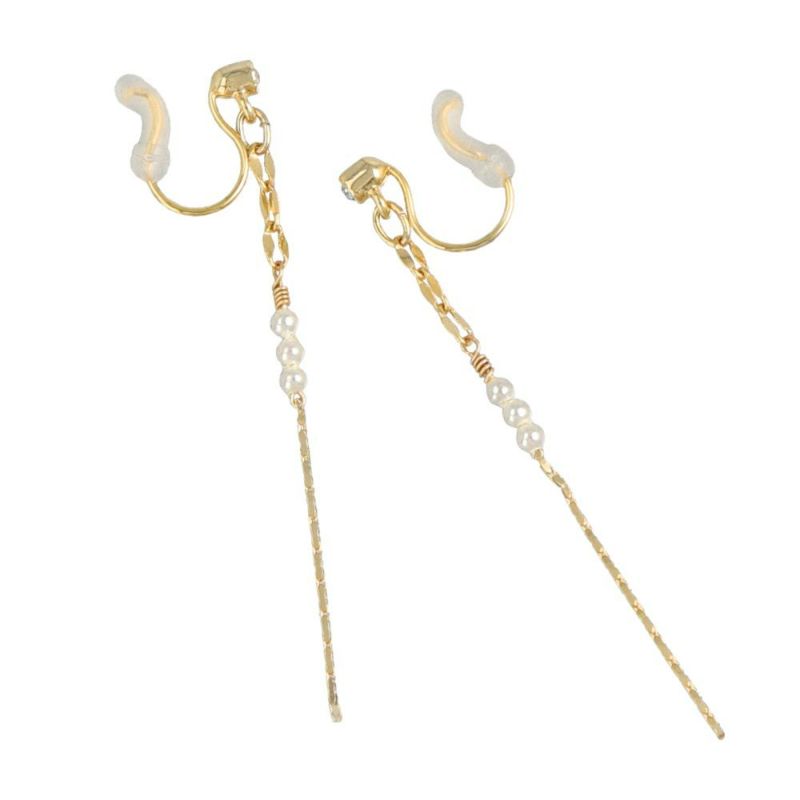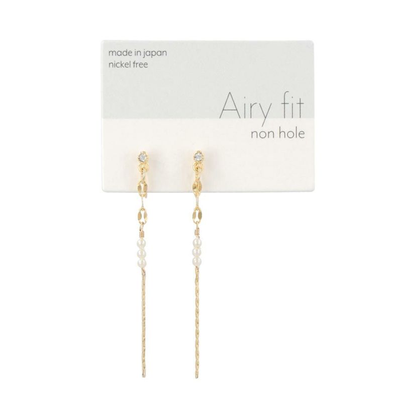 ノンホールピアス ニッケルフリー メタル ストーン パール チェーン エアリーフィット シリコンカバー付き イヤリング
