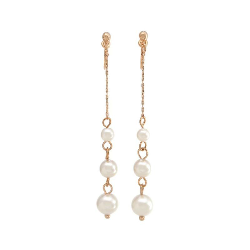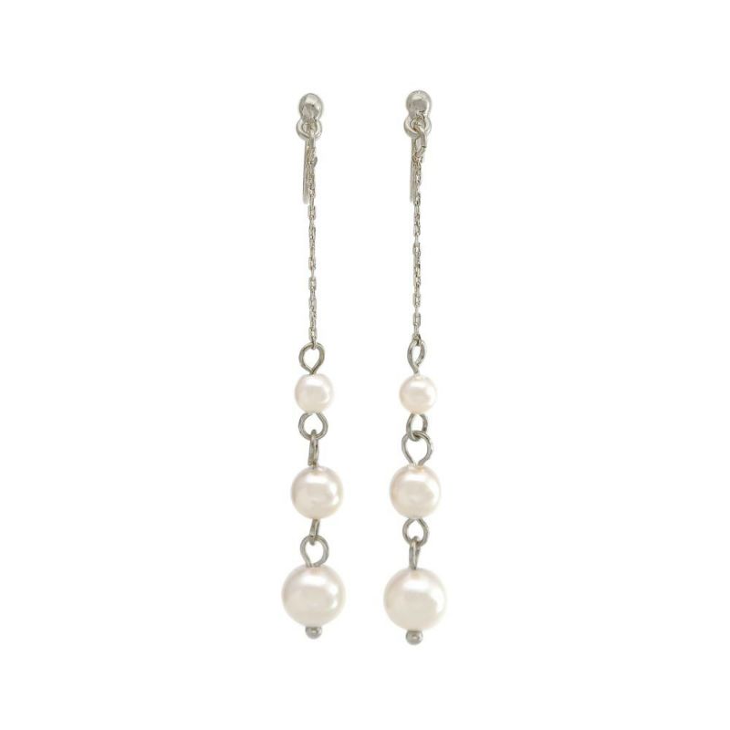 ノンホールピアス ニッケルフリー スリーパール チェーン エアリーフィット シリコンカバー付き イヤリング