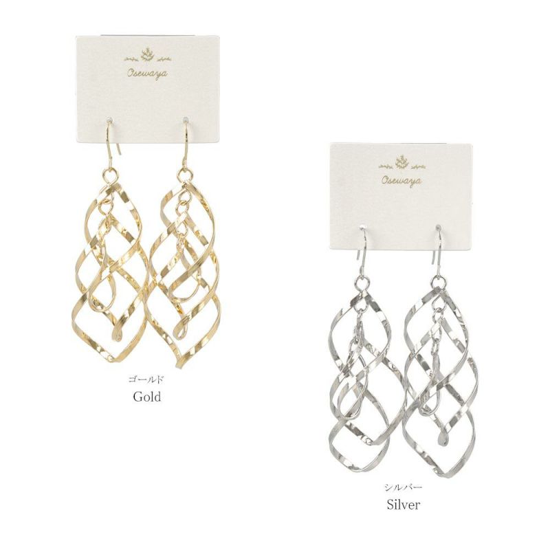 ピアス ニッケルフリー ツイスト メタル トリプルドロップ フックピアス