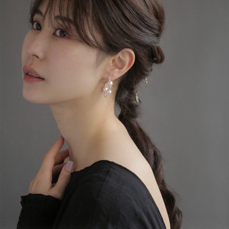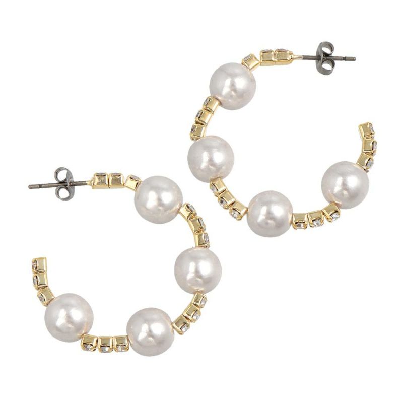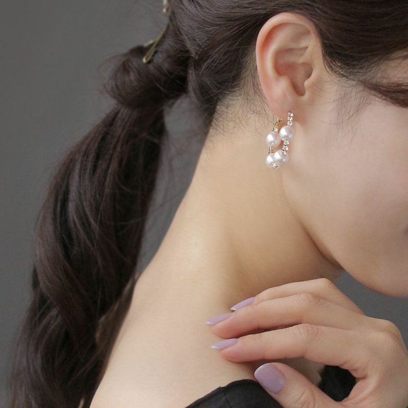 pc1468インパクト重視、気合の入るデコラティブなデザイン。デイリーからオケージョンまで幅広くカバーしてくれる、パールのフープピアス。