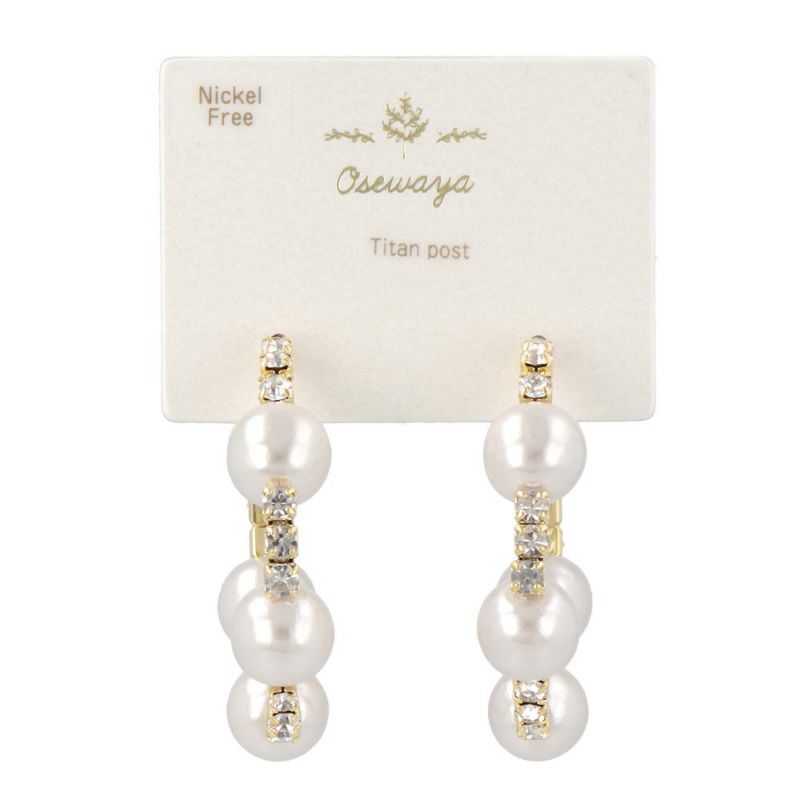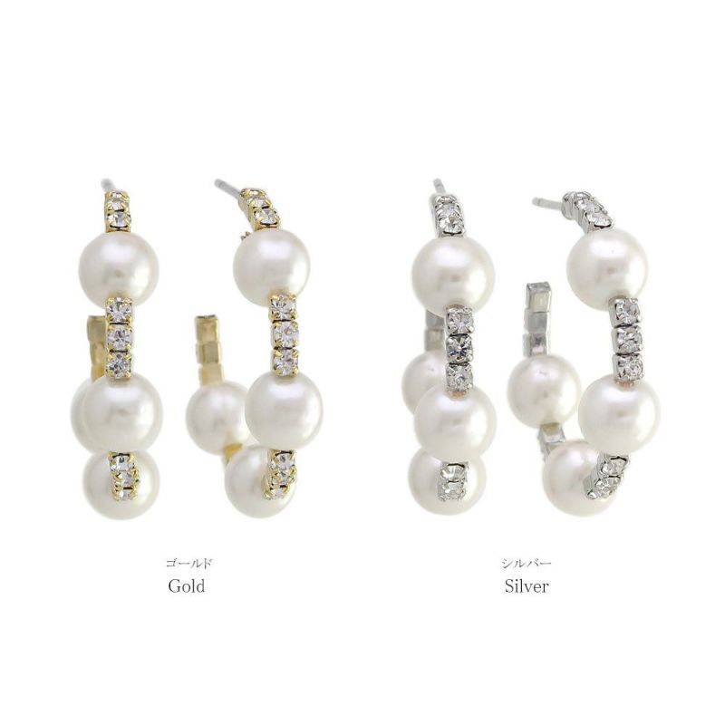 ピアス パール ラインストーン チタンポスト C型 スタッドピアス