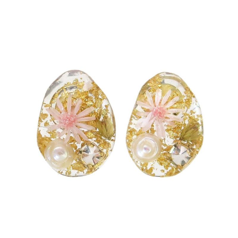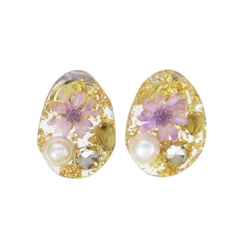 ピアス ニッケルフリー ドライフラワー&淡水パール封入 チタンポスト スタッドピアス