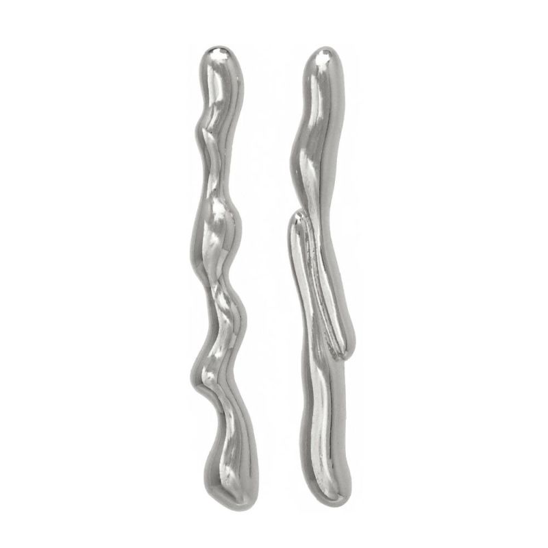 ピアス ニッケルフリー メタル メルト ウェーブ ダブル ライン アシンメトリー チタンポスト スタッドピアス