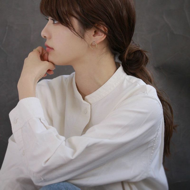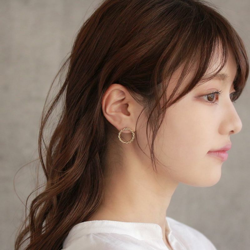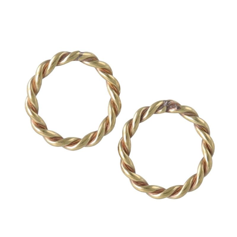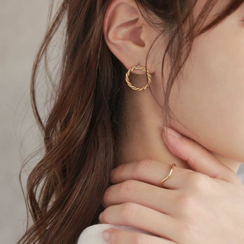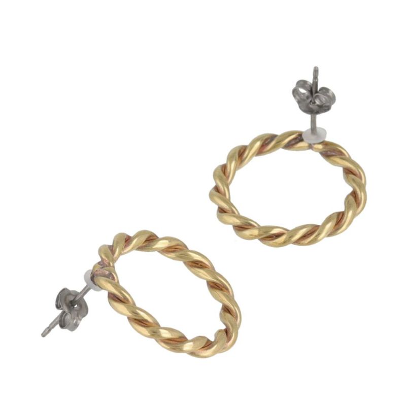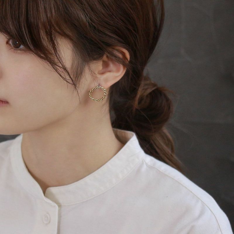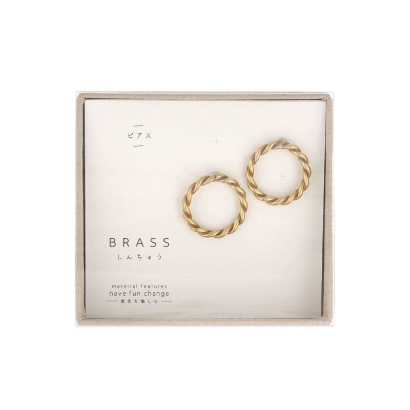ピアス 経年変化 BRASS しんちゅう ツイスト サークル チタンポスト スタッドピアス ニッケルフリー ケース入り