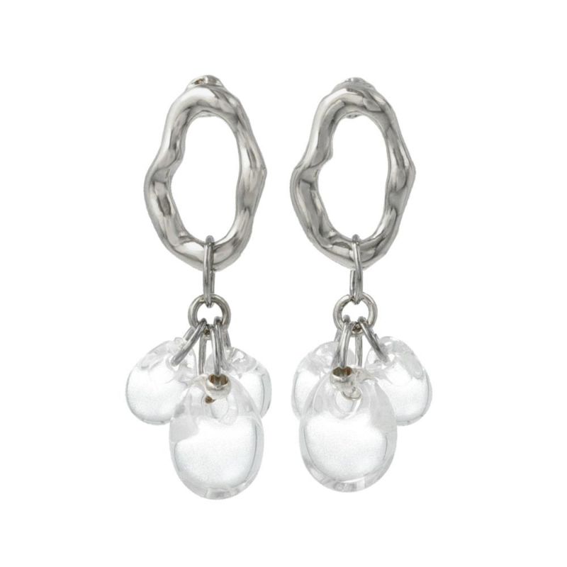 ピアス ニッケルフリー Clear クリア メルト メタル スリー ドロップ ビーズ チタンポスト スタッドピアス