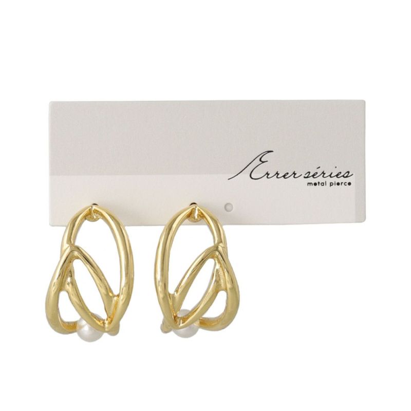 ピアス R/アール ダブル アーモンド メタル パール チタンポスト スタッドピアス