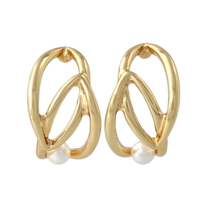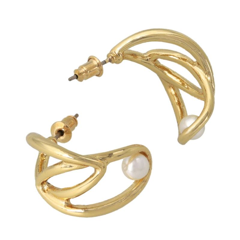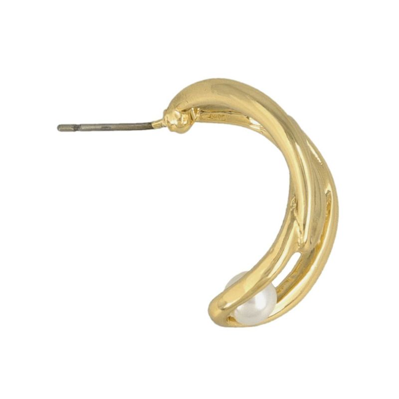 やわらかな曲線、Round(円形)を意味するデザイン。ポイントにあしらったパールが品良く、オンオフ問わず毎日でも使えるピアス。