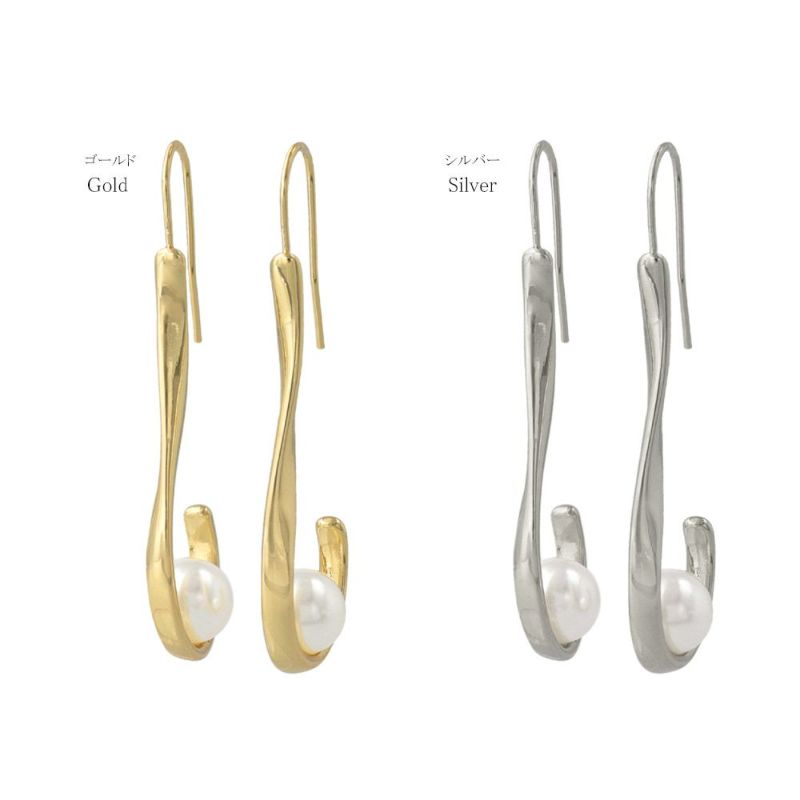 ピアス R/アール インサイド カーブ バー メタル パール フックピアス