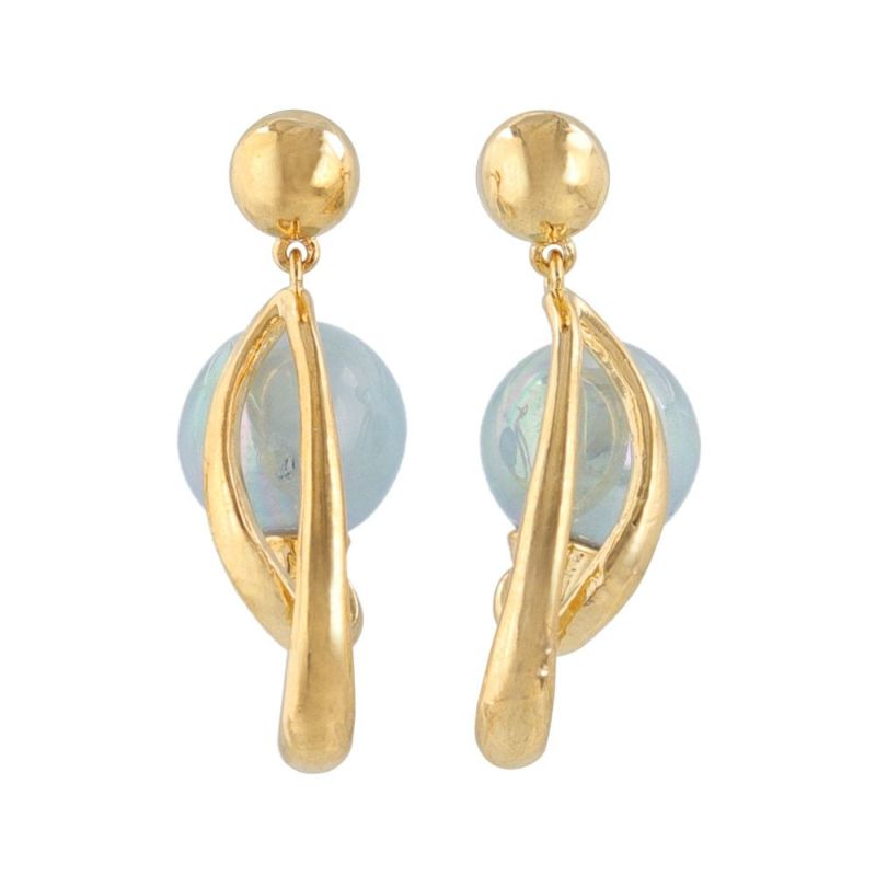 ピアス ニッケルフリー 偏光オーロラ マーブル ボール カーブ メタル チタンポスト スタッドピアス