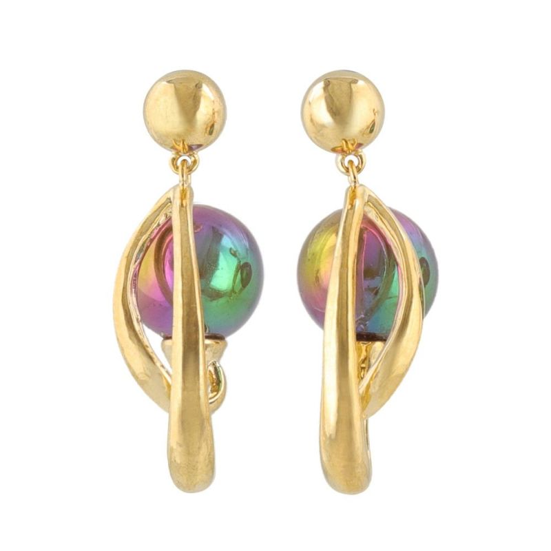 pc1576動きによって新しい輝きをみせる、偏光オーロラxメタルのピアス。
