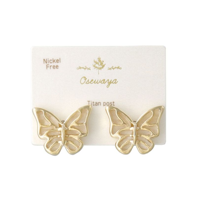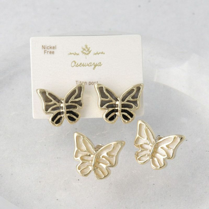 ピアス ニッケルフリー 蝶 バタフライ モノトーン ゴールド ライン チタンポスト スタッドピアス