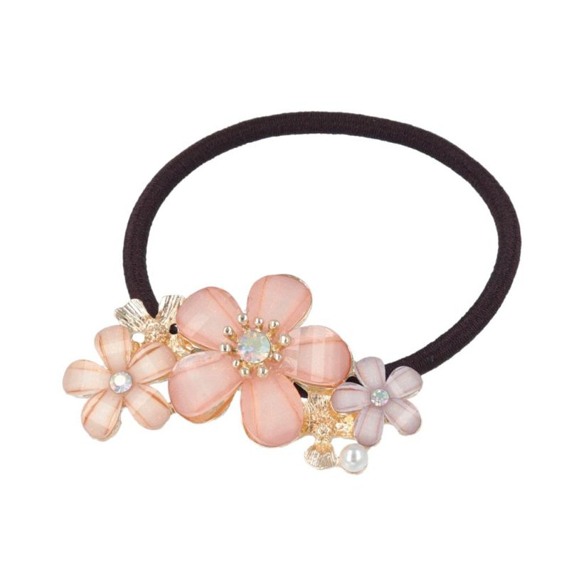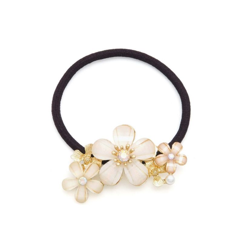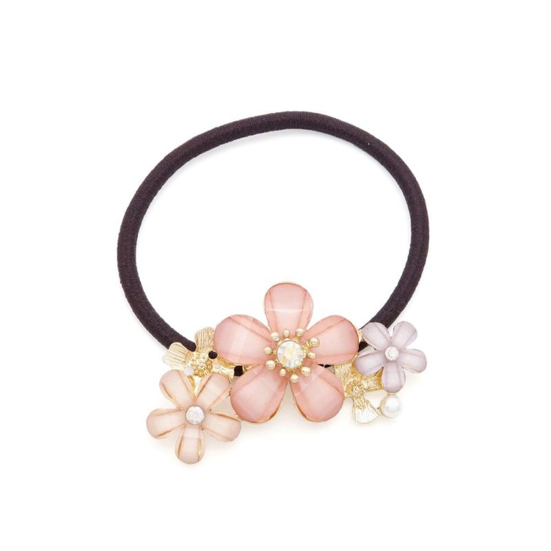 ヘアゴム フラワー メタル アクリル ストーン パール ヘアポニー