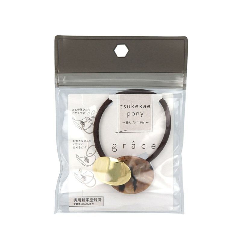 ヘアゴム tsukekae pony 樹脂 マーブル オーバル メタル ヘアゴム2本付き(ブラウン/ブラック)