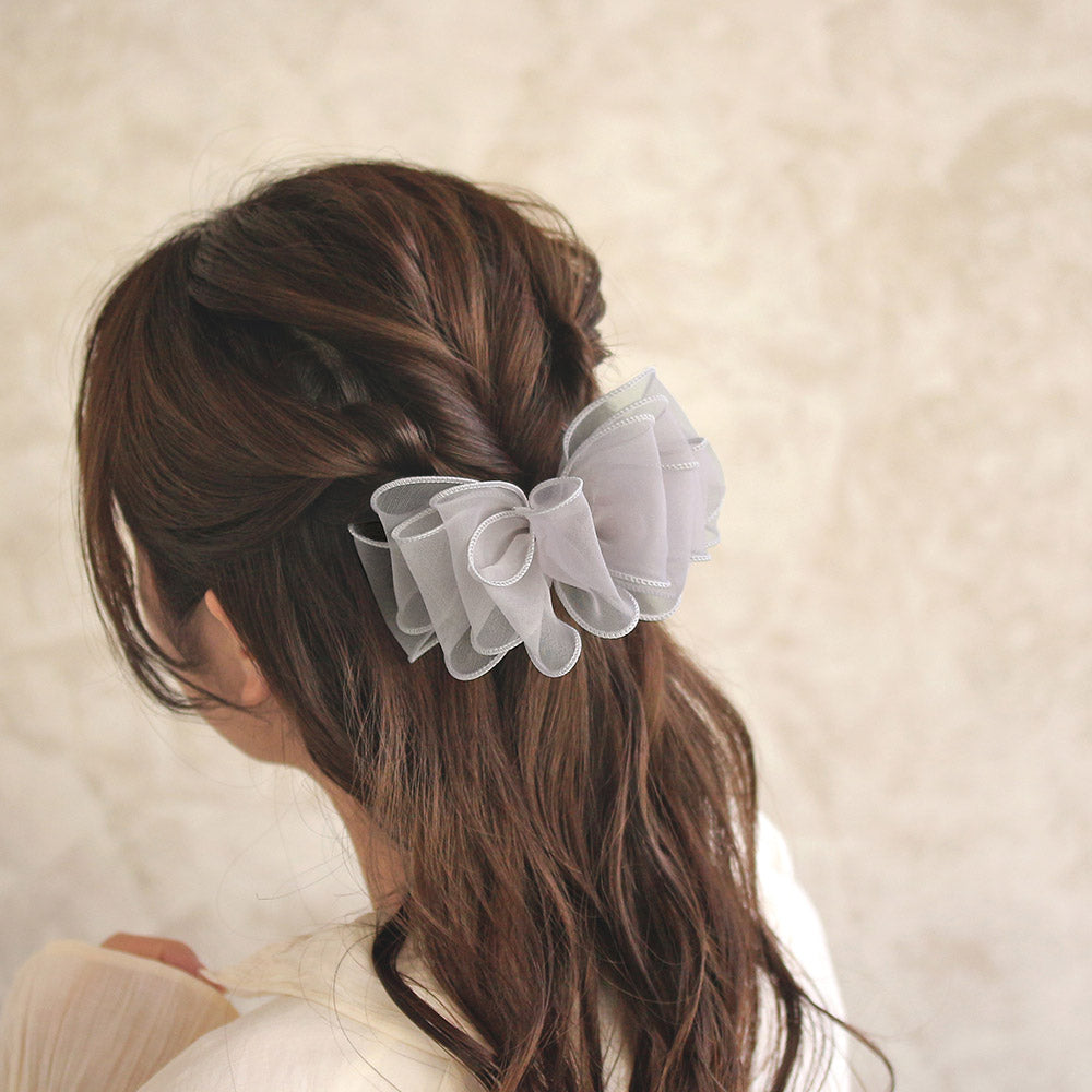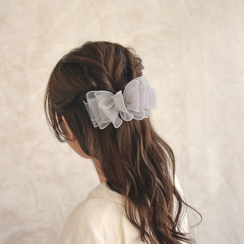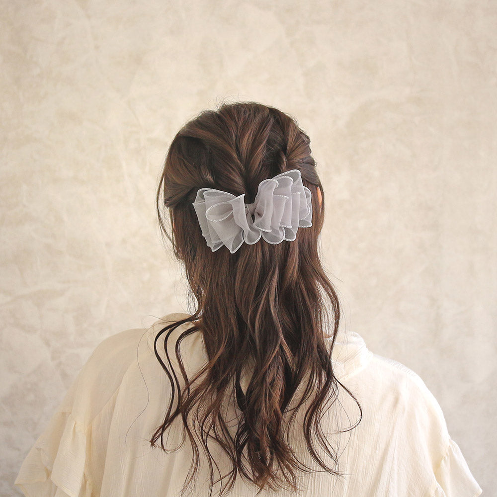 pn0566ガーリーな雰囲気ながら品の良い上品さを醸す、たっぷりリボンのヘアアクセサリー。ほどよく立体感あるリボンが可愛らしい雰囲気をプラスしてくれ、こなれ感あるアレンジに仕上げてくれます。普段使いはもちろんイベント等にも◎