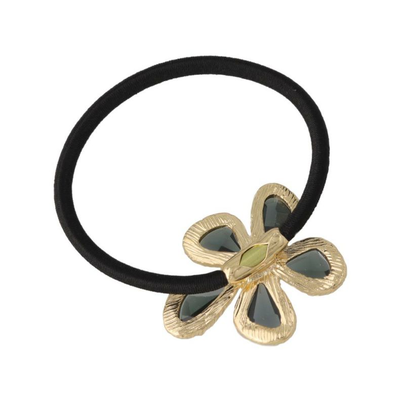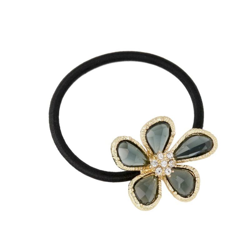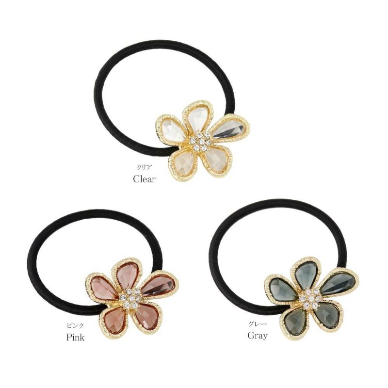 ヘアゴム クリア カラー フラワー メタル ストーン ヘアポニー