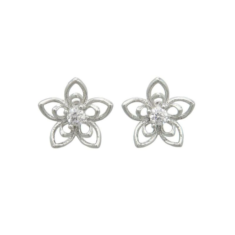 ピアス ニッケルフリー メタル キュービックジルコニア フラワー 透かし スタッドピアス