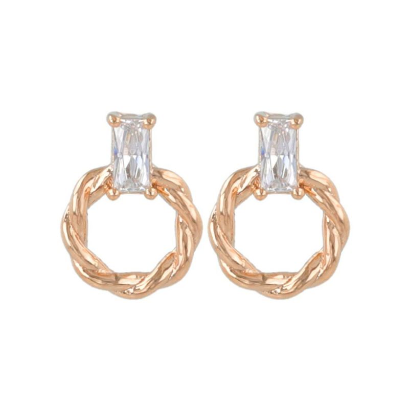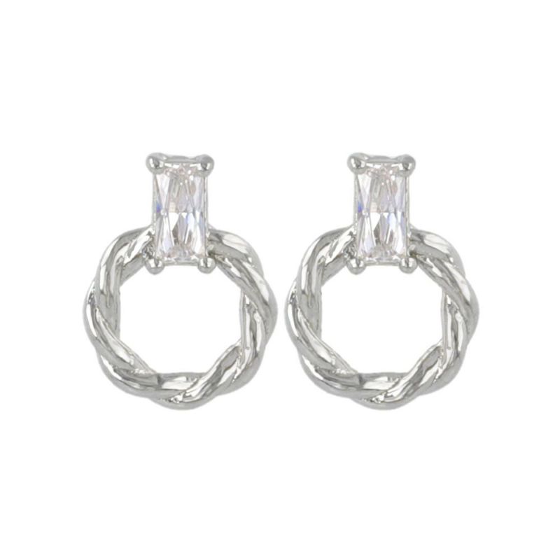 ピアス ニッケルフリー キュービックジルコニア ミニ レクタングル メタル ツイスト サークル チタンポスト スタッドピアス