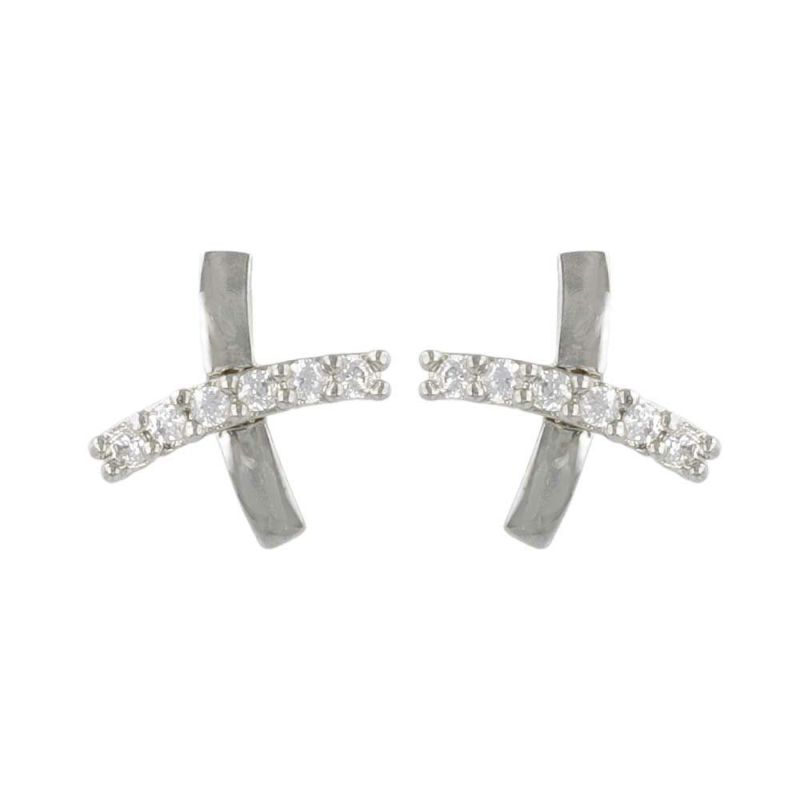 ピアス ニッケルフリー キュービックジルコニア メタル クロス チタンポスト スタッドピアス