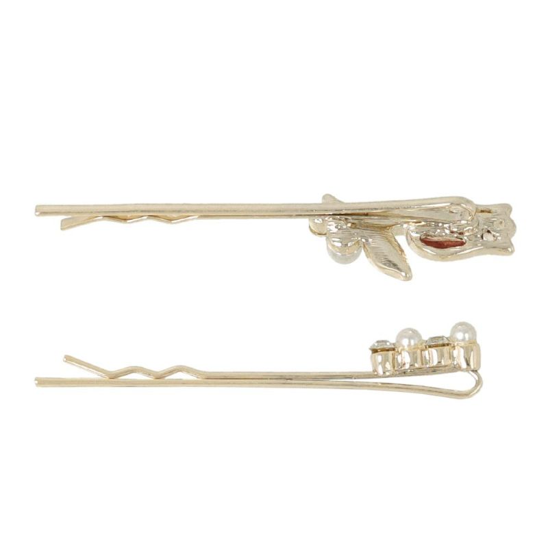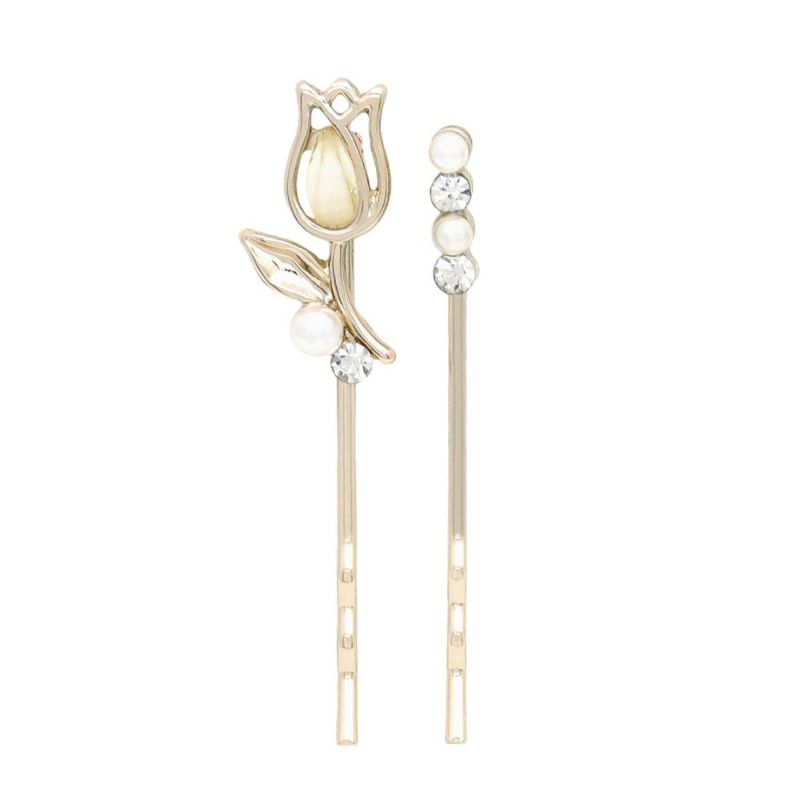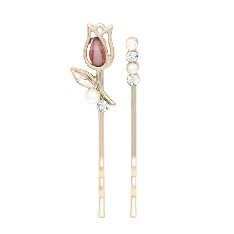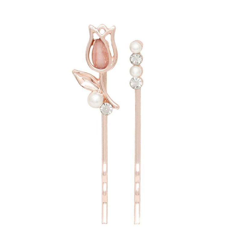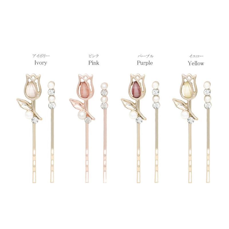 ヘアピン ニッケルフリー チューリップ フラワー メタル アクリル ストーン パール 2本セット アメピン
