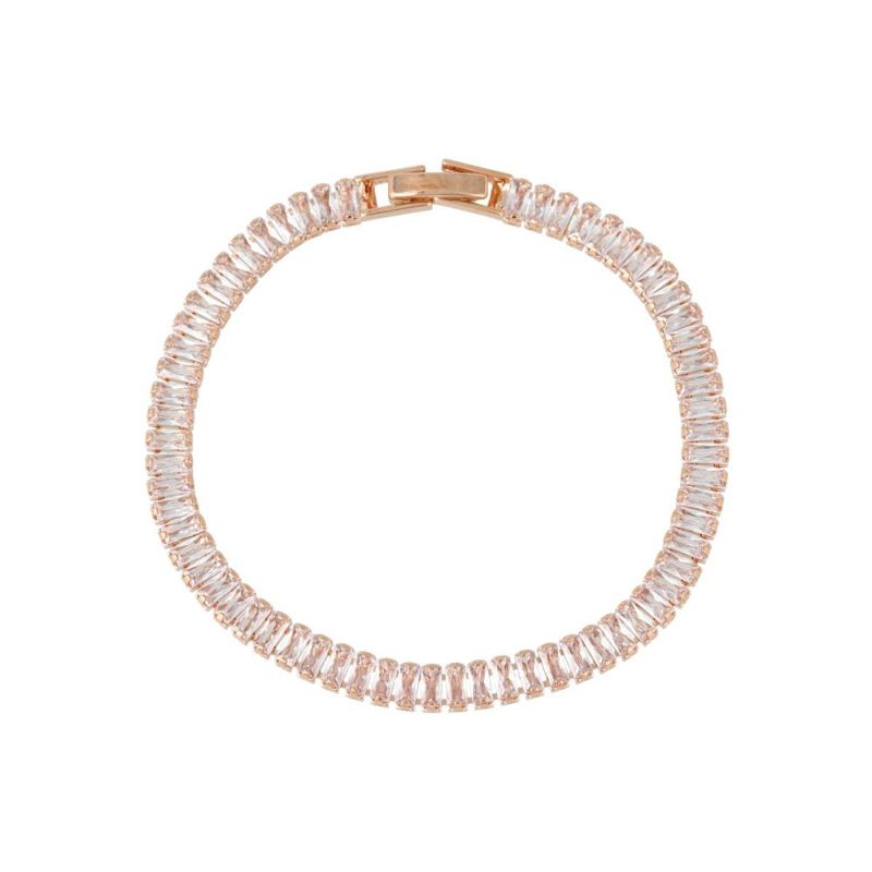 ブレスレット ニッケルフリー メタル レクタングル キュービックジルコニア 中折れ式クラスプ チェーンブレスレット