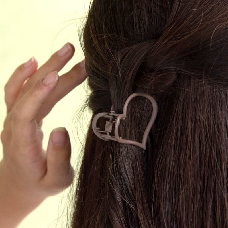 bs0576幅広いコーデと相性抜群、かわいく盛れるハートのバンスクリップ。アレンジに幅の効くミニサイズで、はさむだけで手軽につけられるヘアクリップ。