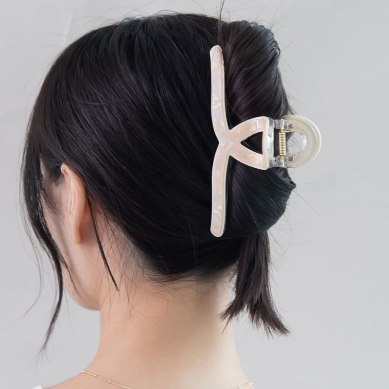 bs0579動きによって新しい輝きをみせる、偏光オーロラのヘアクリップ。キレイ色のマーブルアクセサリーで洒落っ気をオン、ヘアアレンジに添えるだけで一気にこなれた印象に。可愛いだけじゃなく、ざっくりまとめてお洒落にきまる。
