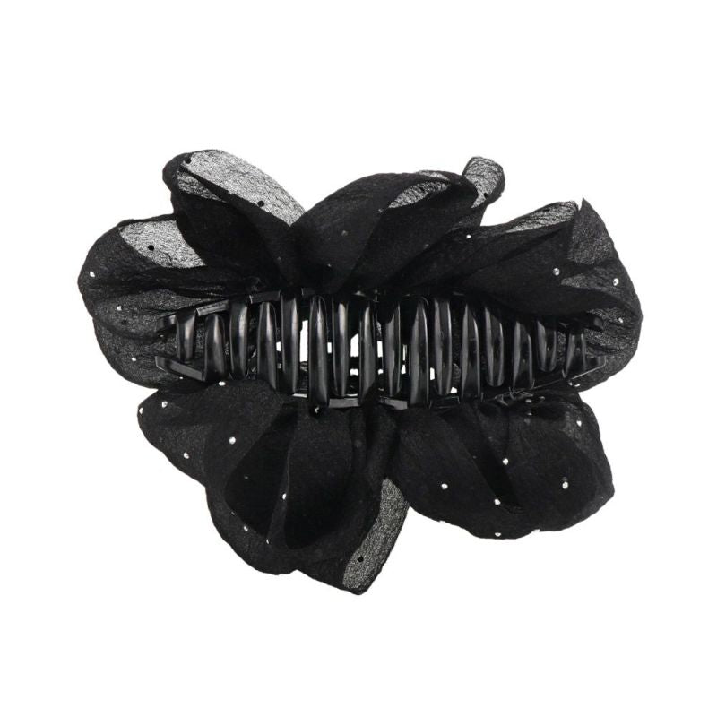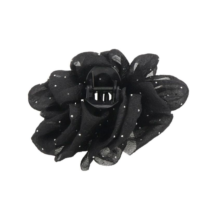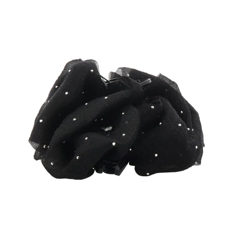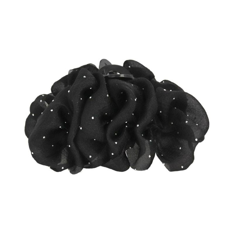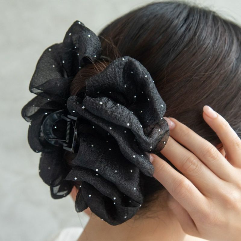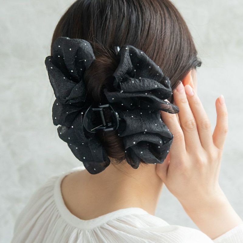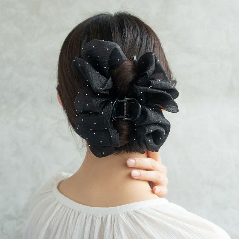 ヘアクリップ ドット ボリューム フリル ブラック バンスクリップ