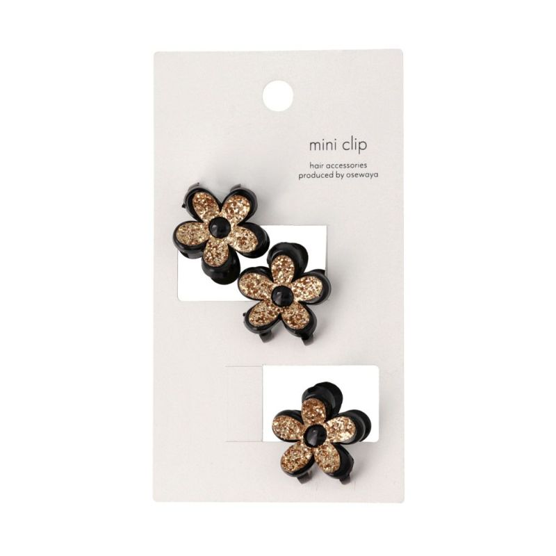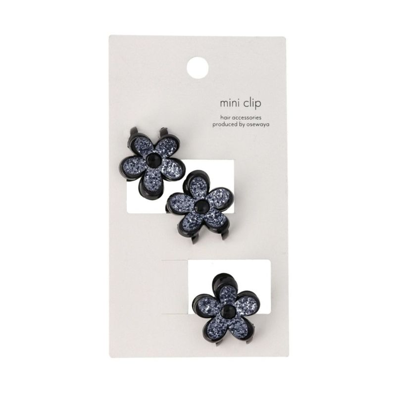 ヘアクリップ mini clip フラワー 花 ラメ 3個セット ミニバンスクリップ