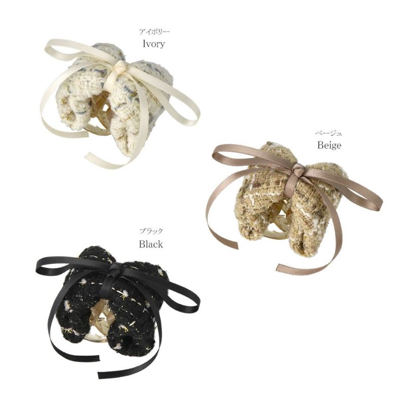 bs0625映えるリボンクリップ、後ろ姿までぬかりなく可愛いまとめ髪が叶います。あたたかみのあるツイード調素材を取り入れて、ヘアアレンジも秋冬モードへ。