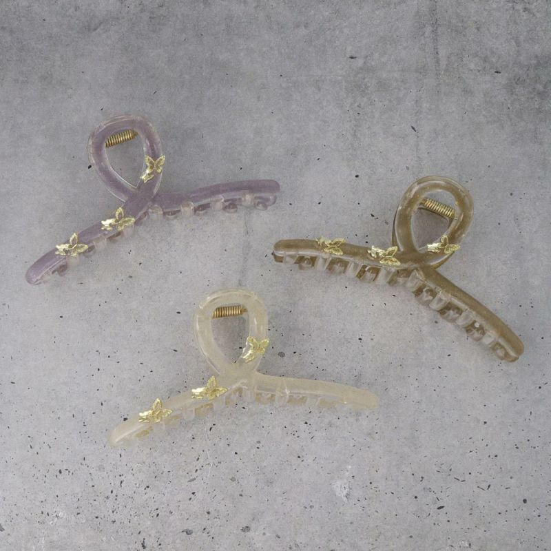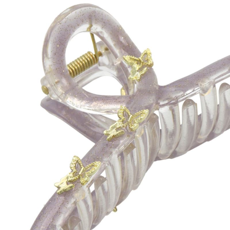 ヘアクリップ バタフライ メタル クリア カラー ラメ ロール バンスクリップ