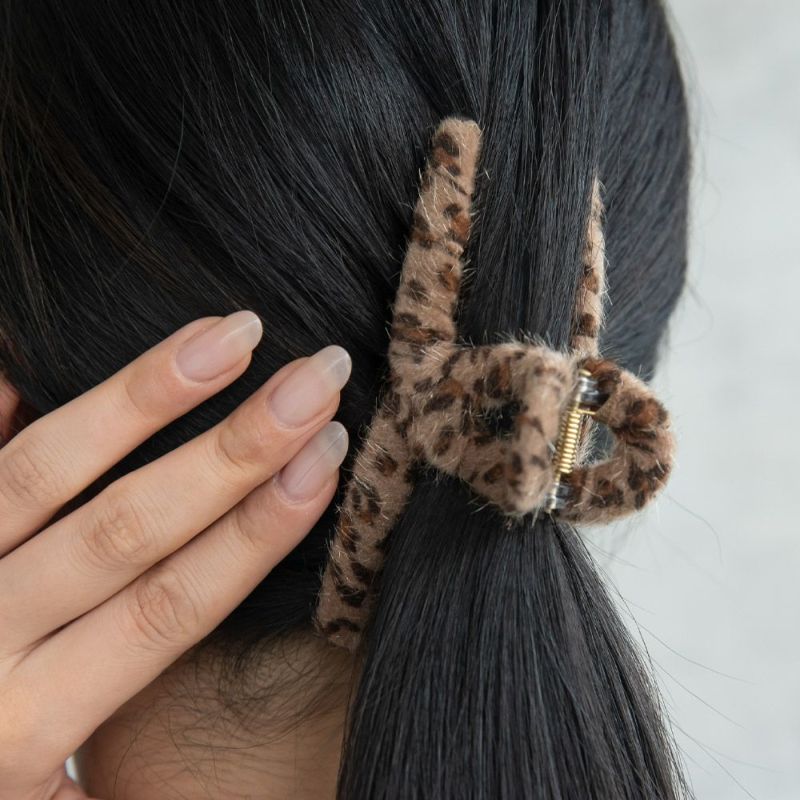 bs0631ロールバンスクリップも季節感のあるハラコ風素材へ。レオパード柄の小物使いで大人のスタイリングにアクセントを。普段のコーデにプラスするだけで印象チェンジが叶う、周りと差が付くおしゃれアイテム。差し色使いにも◎