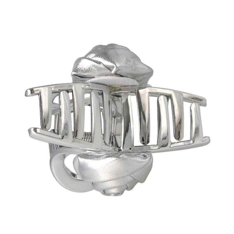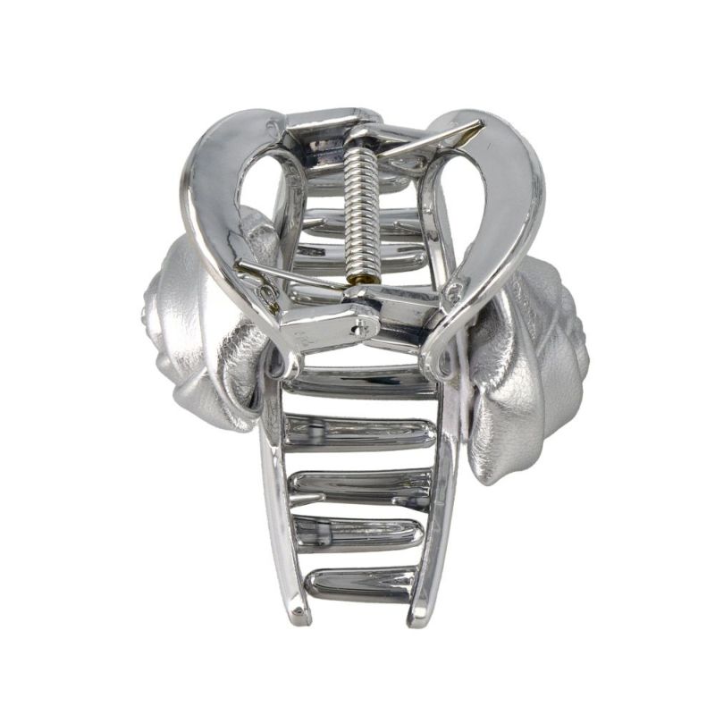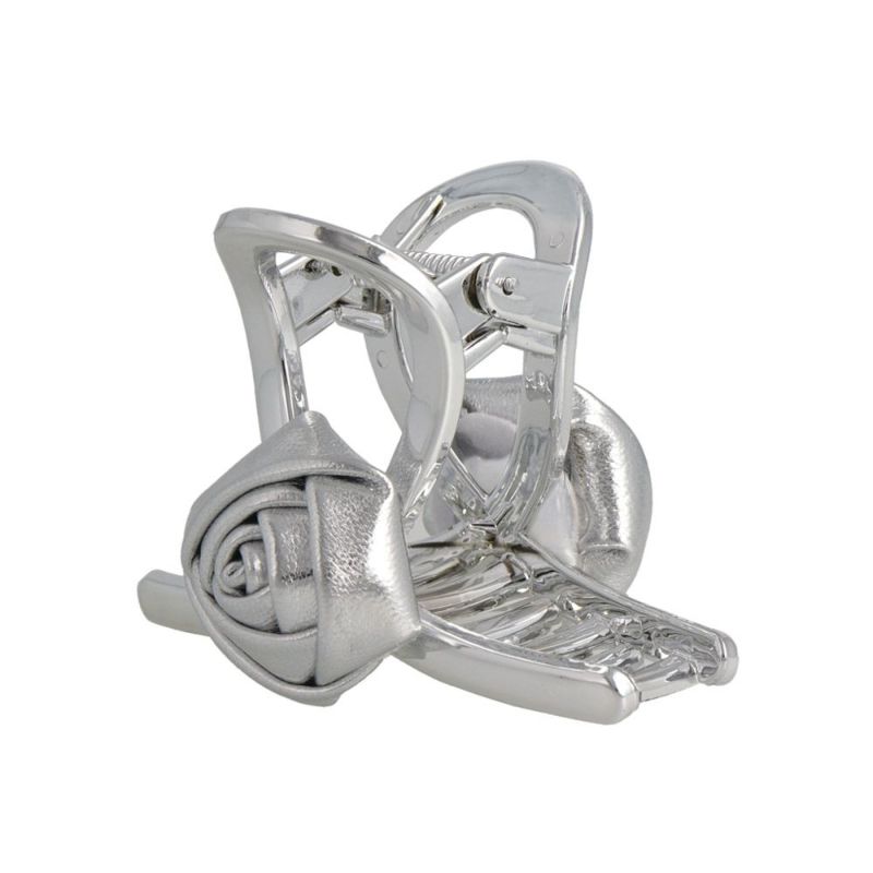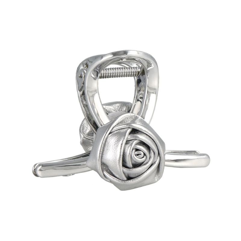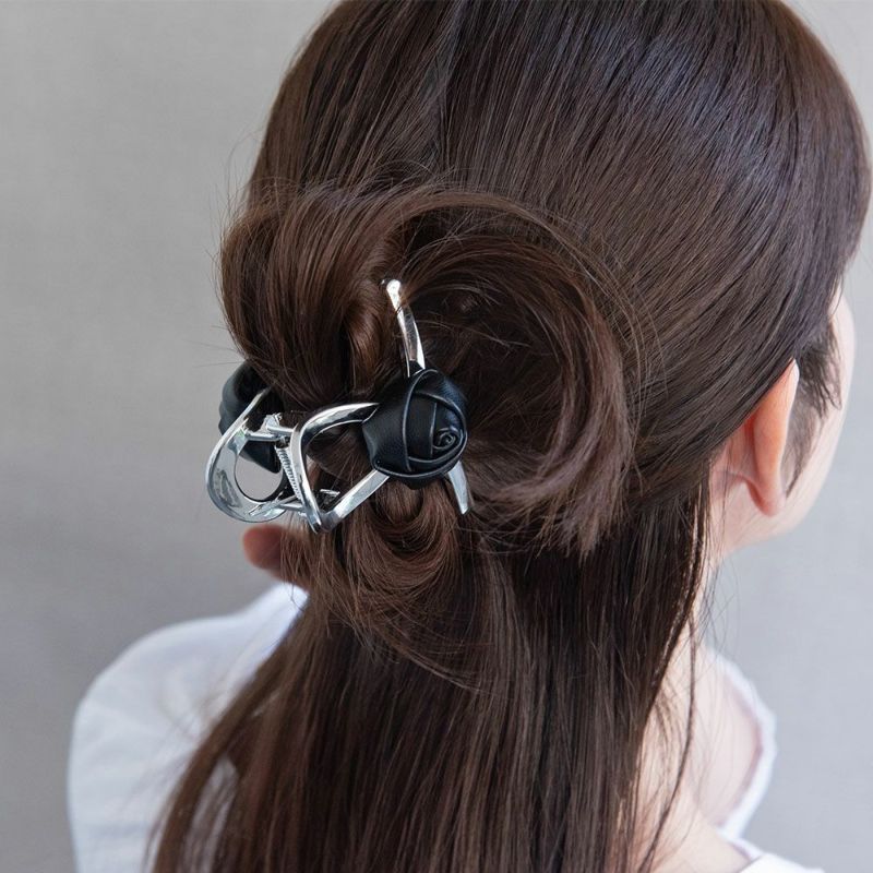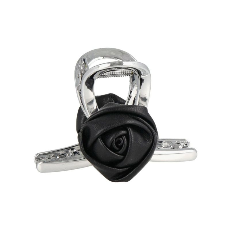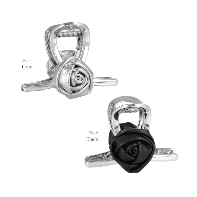 ヘアクリップ yura フラワー ローズ 巻きバラ 薔薇 フェイクレザー ロール バンスクリップ