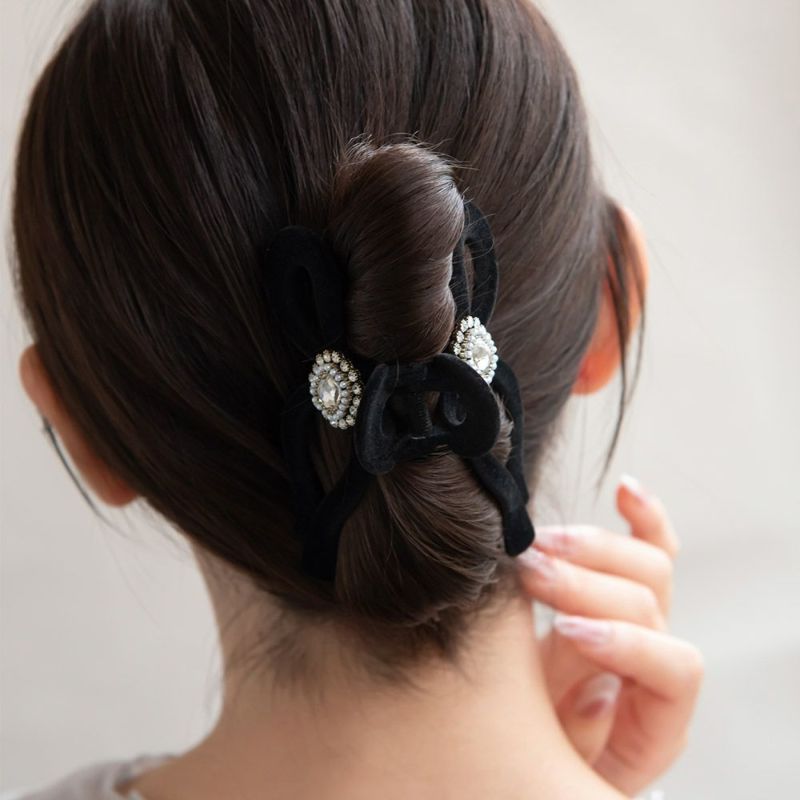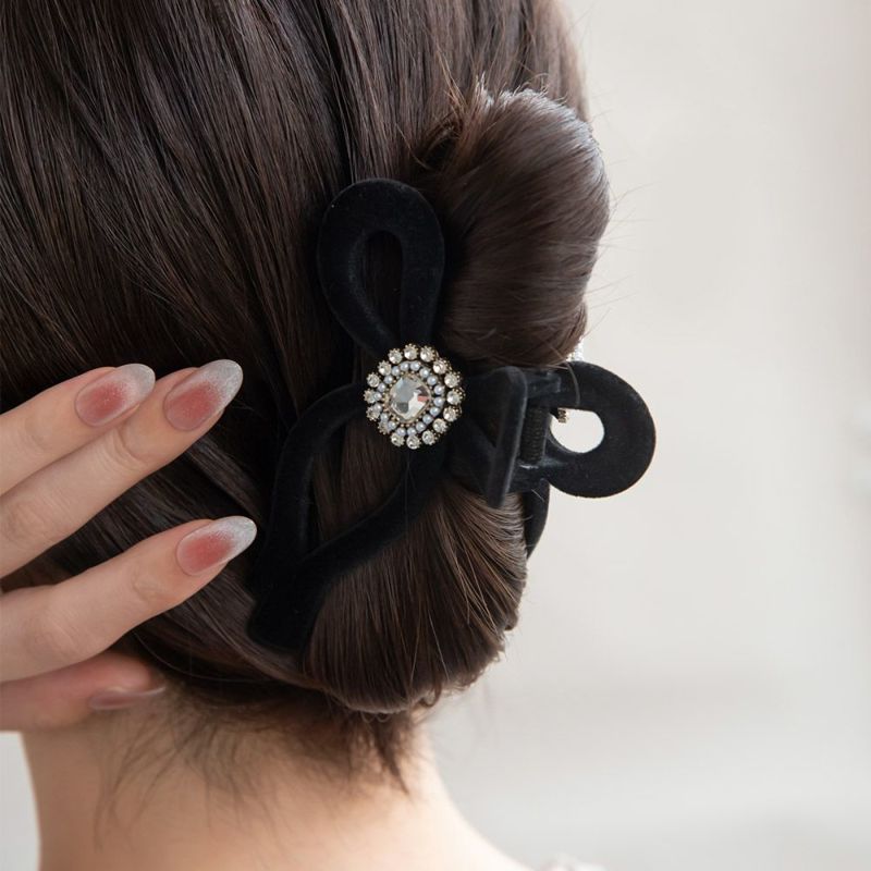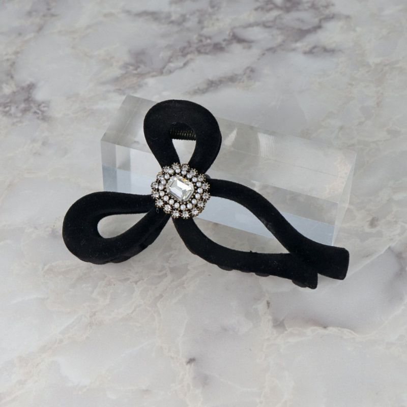 bs0648フロッキー素材にアンティークパーツをプラスしたバンスクリップ。いつものヘアにプラスするだけで、華やかで気品あるバックスタイルに。大人女子にぴったりなヘアクリップ。