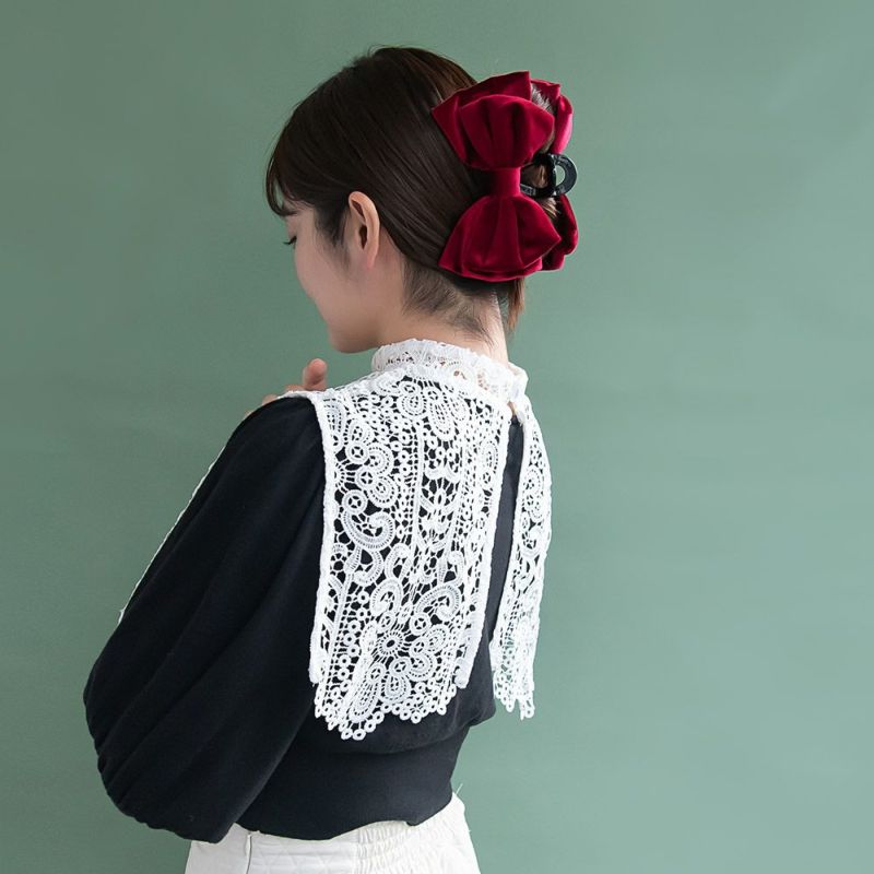 ヘアクリップ ビッグ ダブル リボン ベロア風 バンスクリップ