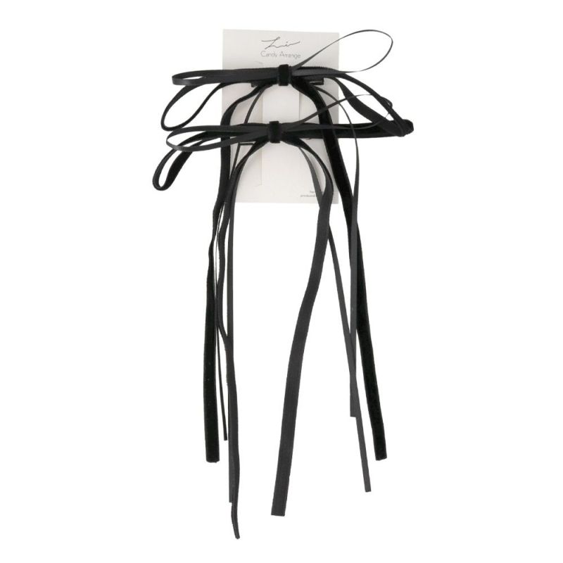 ヘアクリップ Candy Arrange ニッケルフリー ロング スリム ベロア風 ダブル リボン 2個セット ミニ クリップ
