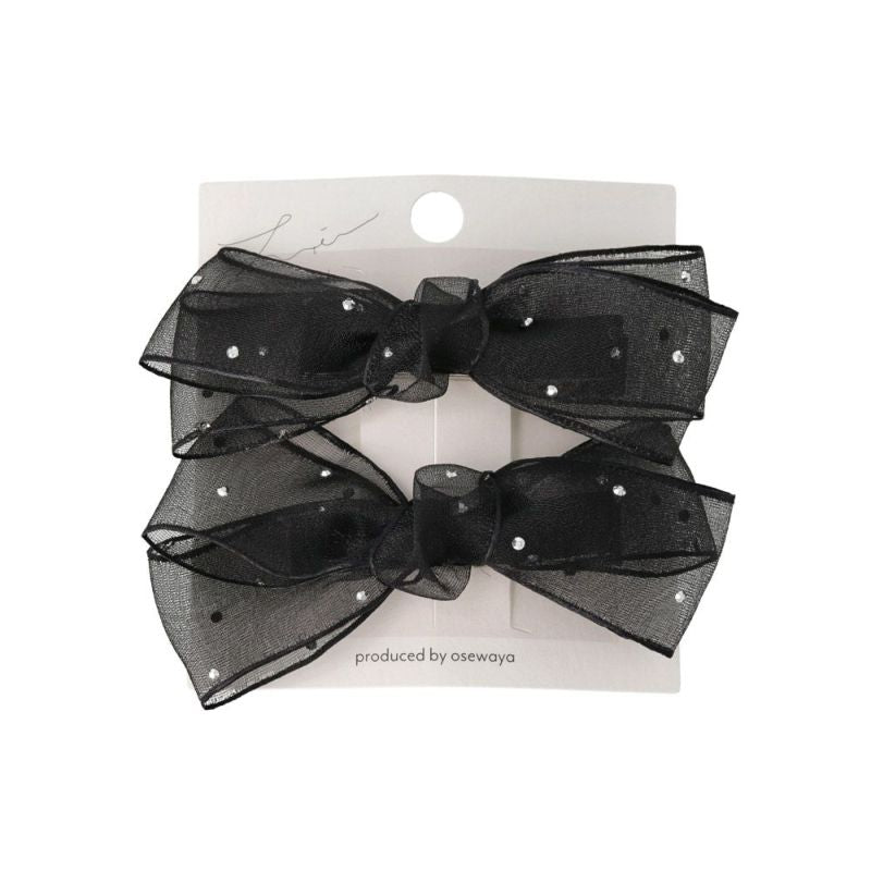 ヘアクリップ シアー ドット ベーシックカラー 2個セット クリップ