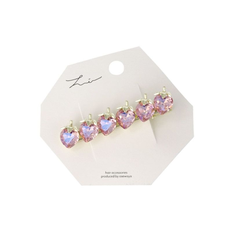 ヘアクリップ クリア カラー ハート ストーン ストロベリー いちご メタル クリップ