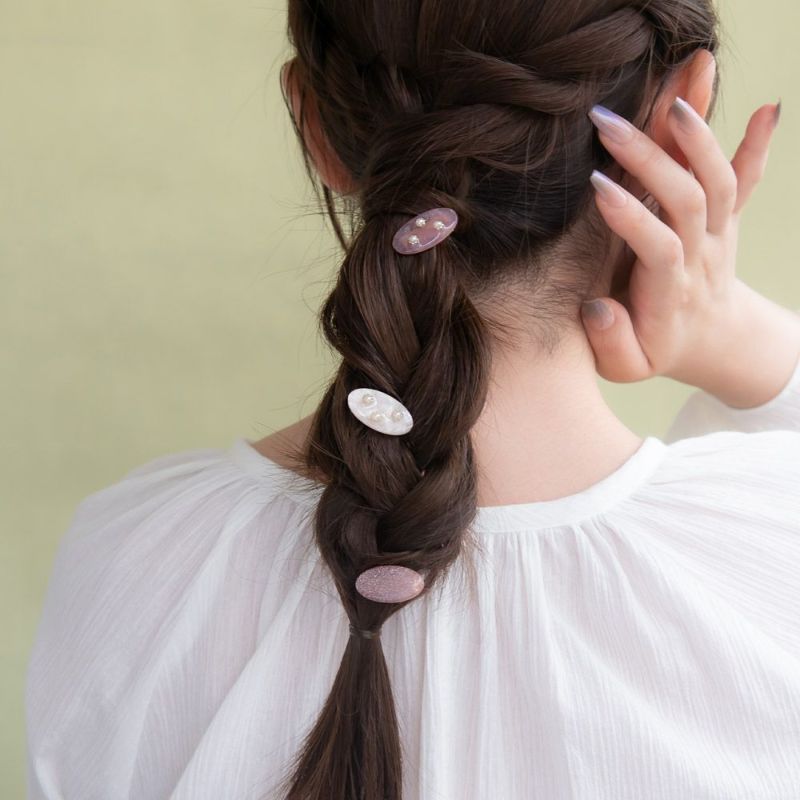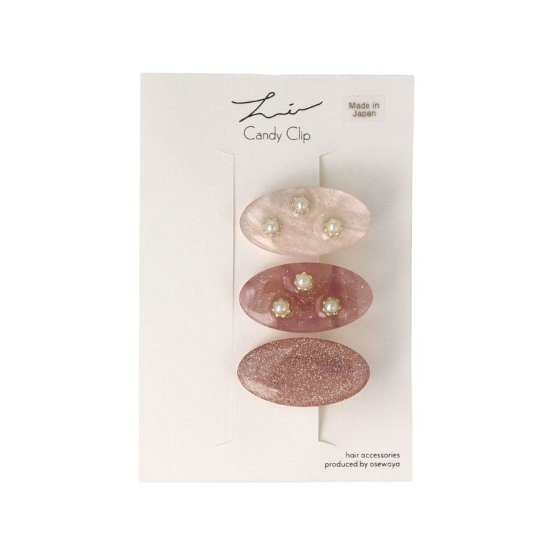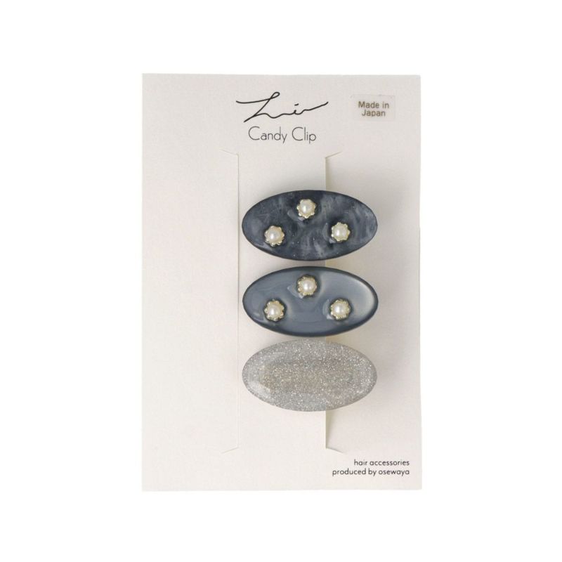 ヘアクリップ Candy Clip オーバル パール マーブル カラー ラメ 3個セット ミニクリップ
