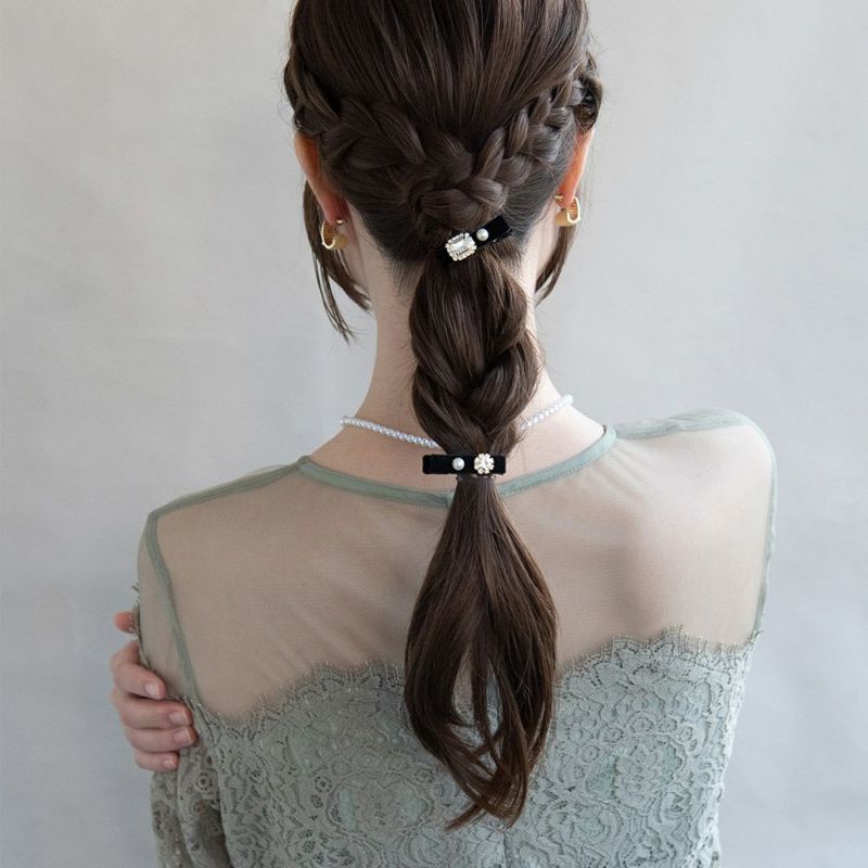 ヘアクリップ Candy Clip ベロア パール ストーン レクタングル 2個セット ミニ クリップ