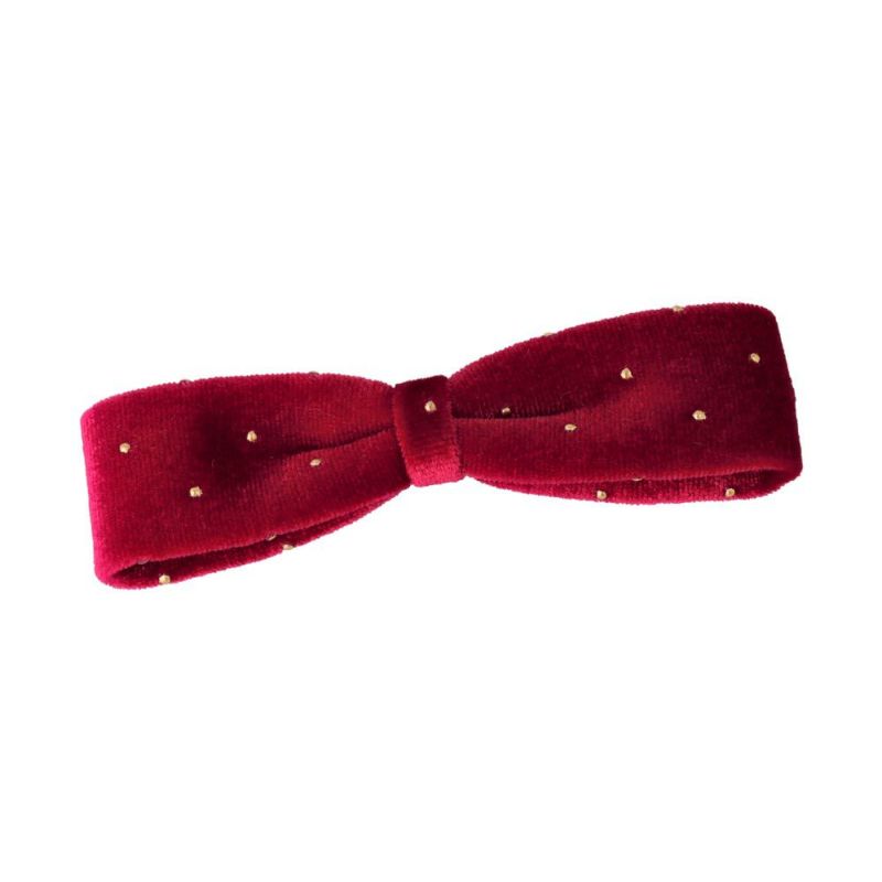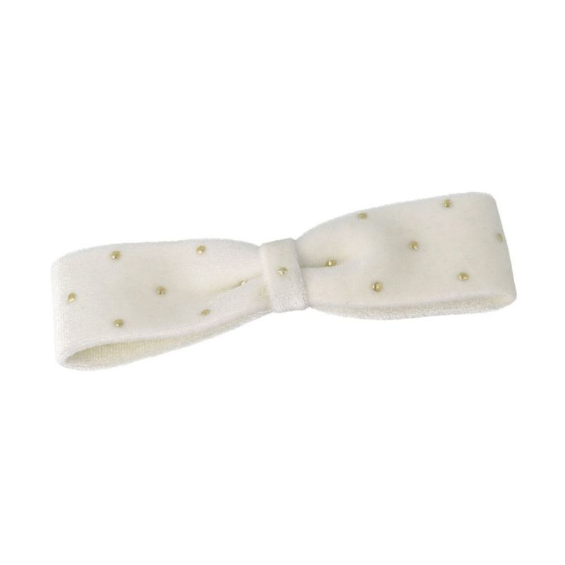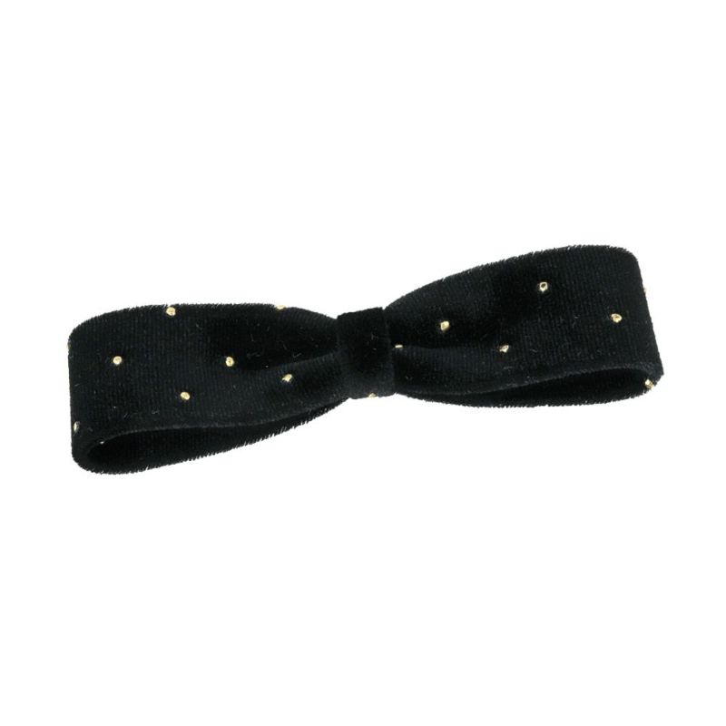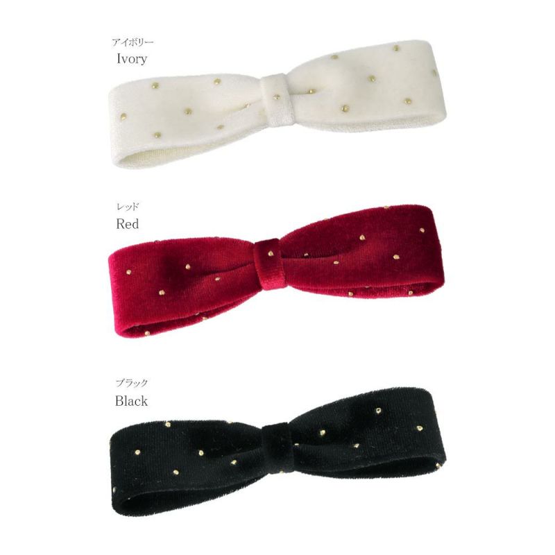 ヘアクリップ ベロア ゴールド ドット リボン クリップ