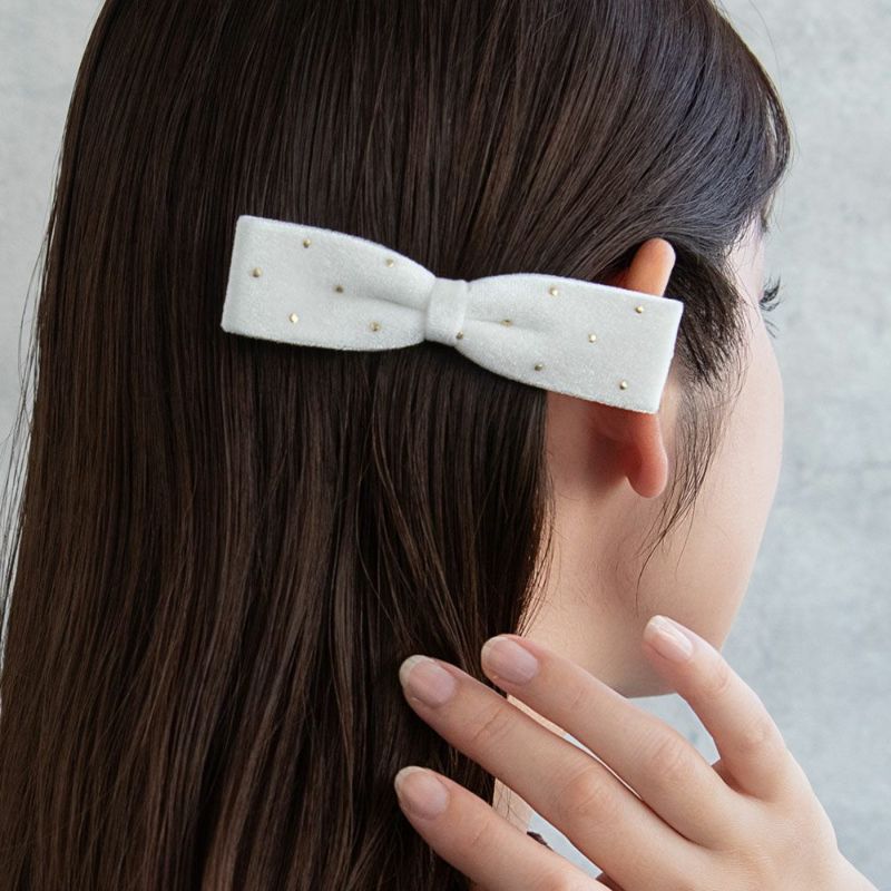 cl0329秋冬の装いに、ベロアの光沢をおひとつ。かわいく盛れるリボンのヘアクリップ。普段のコーデにプラスするだけで印象チェンジ、レディーなコーディネートに。旬のバレエコアスタイルに。イベントや推し活コーデにも◎お友達と色違いでも◎